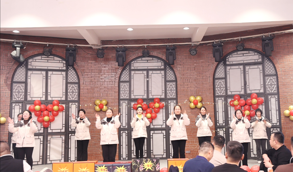 德赢VWIN风机女士们表演舞蹈《撸起袖子加油干》