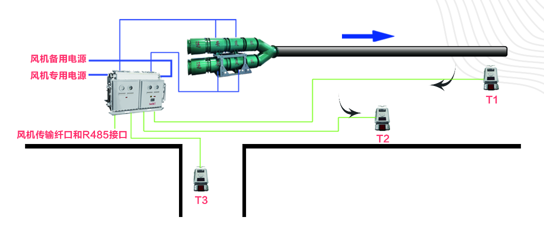 该系统有上位机、局部通风机、变频调速装置、智能控制、分风器等组成。