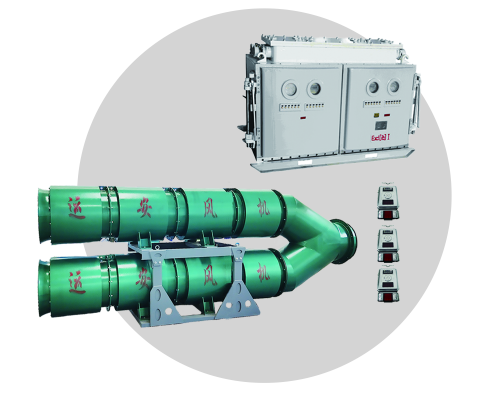 装置由双风机局部通风机系统,自动切换分风器、风机支架、变频器、PLC、开关元件、瓦斯浓度传感器、温度传感器、风速传感器、一氧化碳传感器、粉尘传感器、广播系统和网络系统及风机本体组成,其中功能可根据需求增减配置。(下图仅供参考)