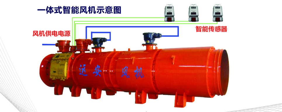 一体式智能风机装置,是我公司开发新型产品,是将变频器与局部通风机合二为一。将局部通风机风道式变频调速装置的散热器安装在局部通风机的风道内,局部通风机工作时产生的高速风流流过散热器表面及电动机外壳,提高散热器及电动机的散热效率。